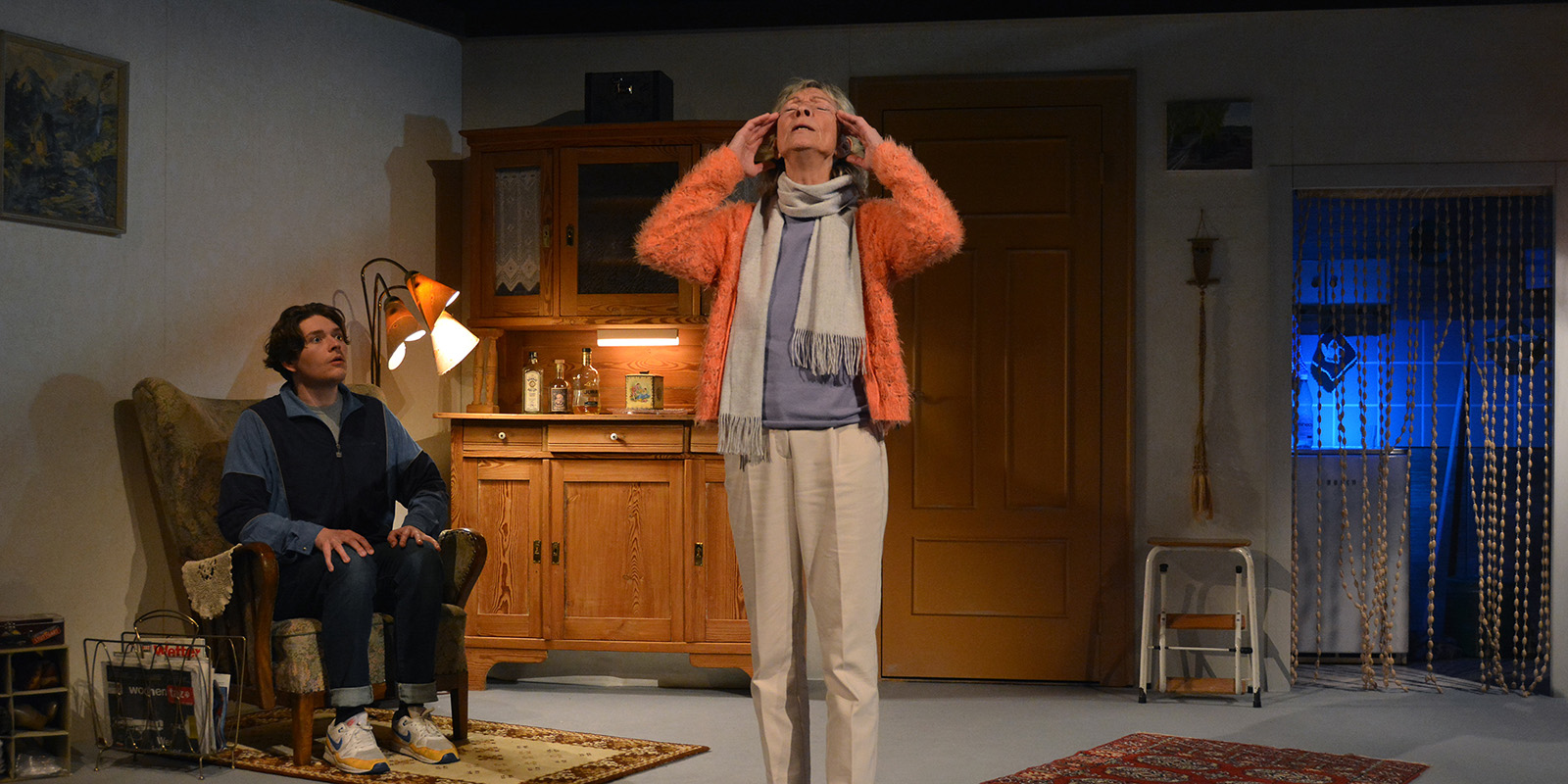 Seit Wochen meldet sich Elisabeth Reimers beim Notruf der Polizei und beschwert sich über Lärm. Lärm aus ihrer eigenen Wohnung – den es gar nicht gibt. Praktisch, dass Polizist Reinhard Peters ihr Nachbar ist und immer wieder tapfer bei ihr klingelt, um bei der einsamen Rentnerin nach dem Rechten zu sehen. Jegliche Hinweise darauf, dass ihre Anrufe eine Straftat seien und dazu führen könnten, dass „echte“ Notrufe nicht durchkämen, verpuffen bei Frau Reimers. Sie streitet alles ab. Denn es könnte ja auch genauso gut sein, dass Peters sich die Notruf-Geschichte nur ausdenkt, um bei Frau Reimers klingeln zu können, um seiner eigenen Einsamkeit zu entkommen … Vereinsamung im Alter, zunehmende Anonymität in der Großstadt, Querelen mit Nachbar*innen: All das beleuchtet David Gieselmann (*1972) in FALSCHER HASE, einem Fest des absurden Humors und der gekonnten Dialogführung. //